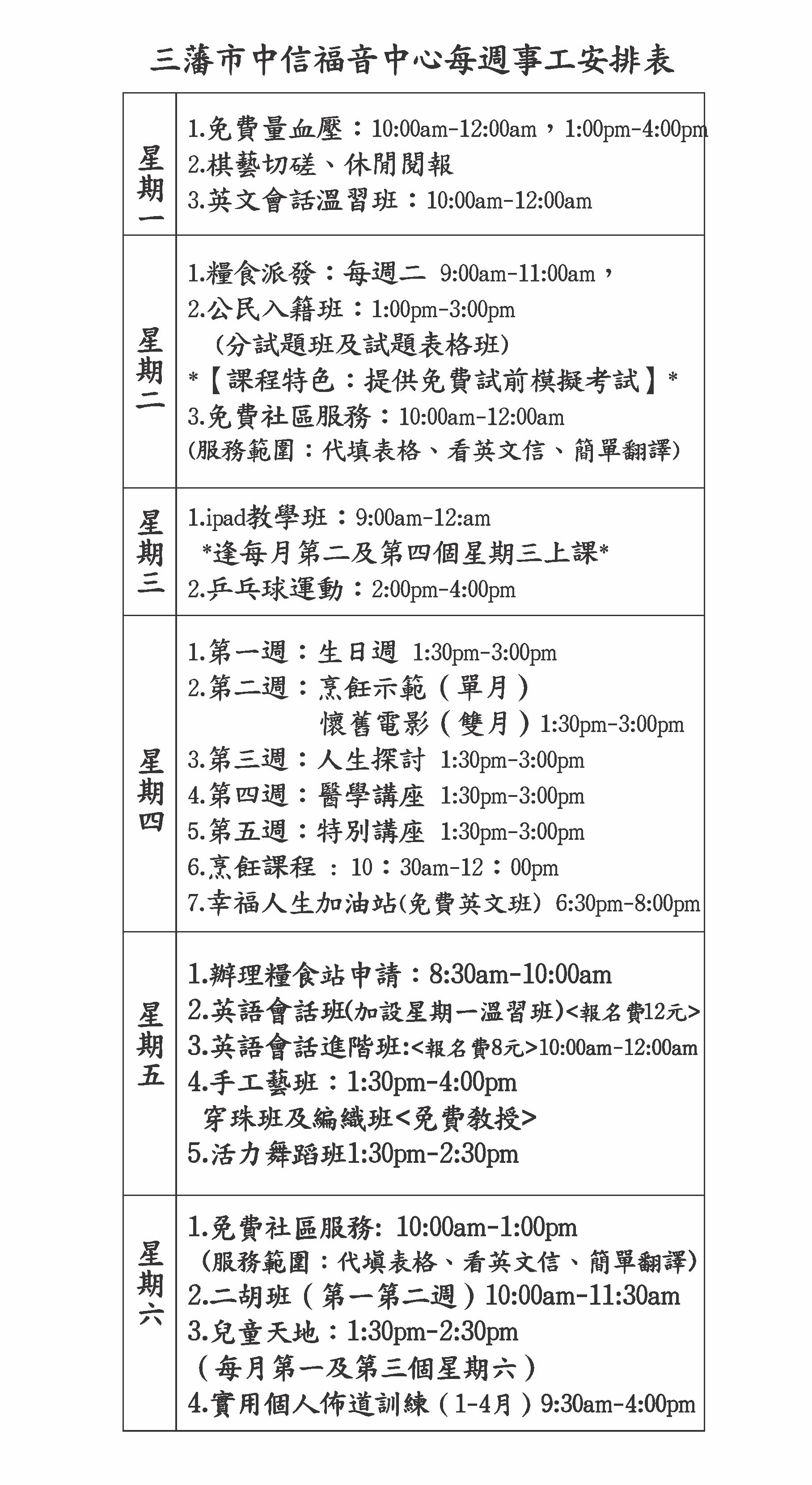 每週事工安排表