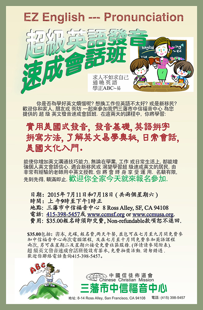 時間:1:00pm-3:00pm <只收報名費八元>