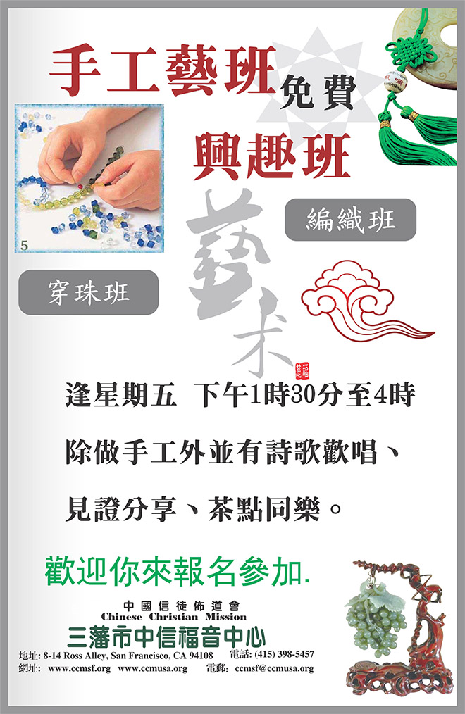 :穿珠班及編織班<免費教授>