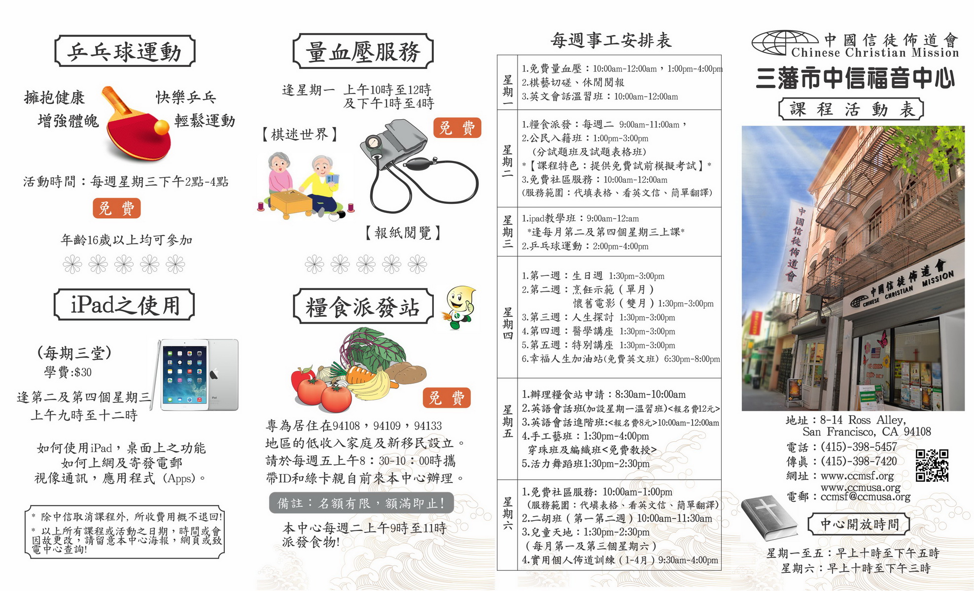 地址: 8-14 Ross Alley, San Francisco, CA 94108 電話: (415) 398-5457 傳真: (415) 398-7420